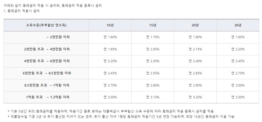 신생아 출산 가구의 주거안정을 위한 특례 대출로 대출접수일 기준 2년 내 ('23.1.1. 이후 출상아) 무주택 세대주가 해당됩니다.
